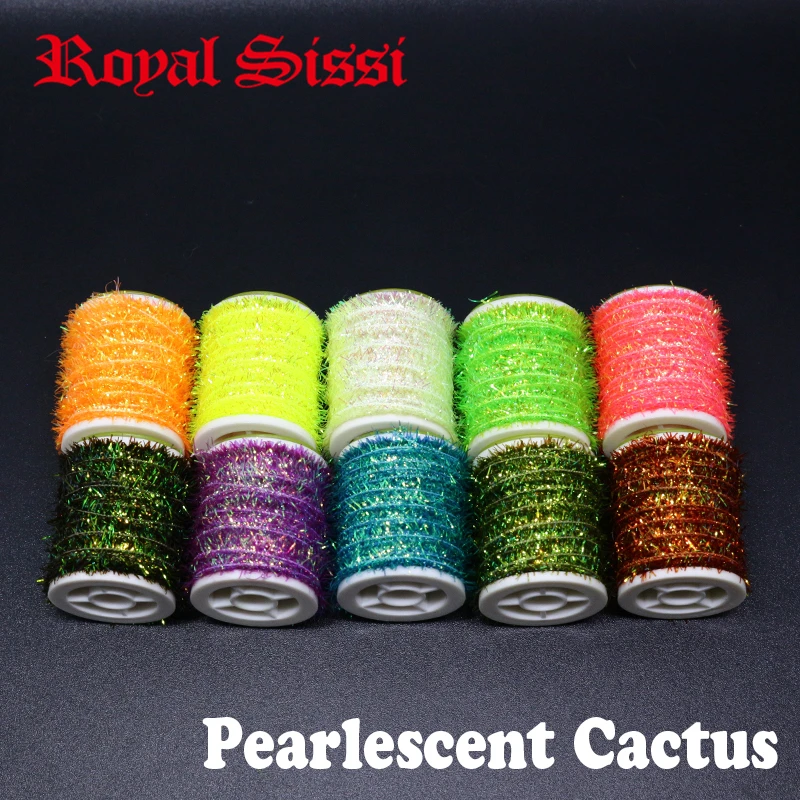 Name: Real Sissi nueva 10 juego de carretes nacarado cactus chenille salmón y trucha mosca serpentina flash cuerpo atado de moscas materiales
